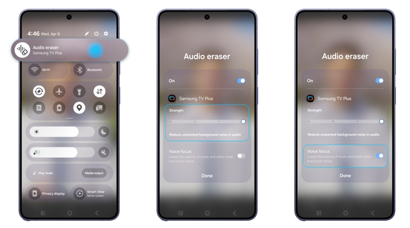 Czyste brzmienie z usuwaniem dźwięku (Audio Eraser) w Galaxy S26