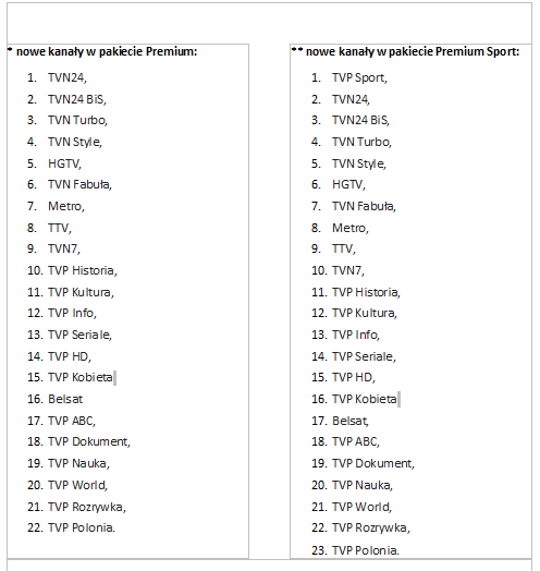 – wszystkie kanały Telewizji Polsat,