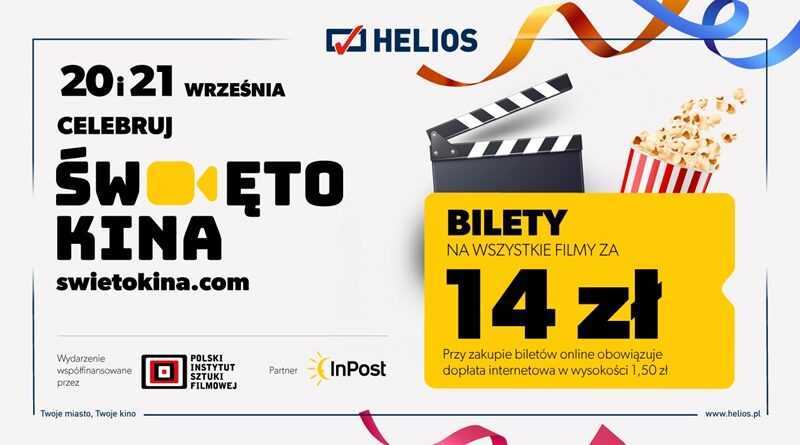 Święto Kina odbędzie się w najbliższy weekend, 20 i 21 września. W tych dniach bilety na filmy będą dostępne w cenie 14 zł (plus opłata internetowa w wysokości 1,50 zł przy zakupie online). Szczegóły dotyczące seansów w sieci Helios dostępne są pod adresem www.helios.pl/aktualnosc/swietokina.