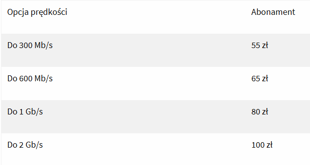 Ceny dostępu do internetu solo od 2. do 9. miesiąca przedstawiają się następująco: