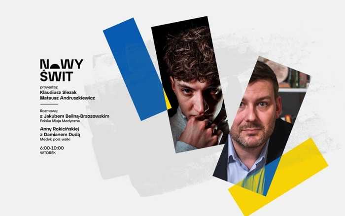 O godz. 6:30 zapraszamy na rozmowę Anny Rokicińskiej z medykiem pola walki, Damianem Dudą. Gościem czwartej godziny Nowego Świtu (godz. 09:30) będzie Jakub Belina-Brzozowski z Polskiej Misji Medycznej.