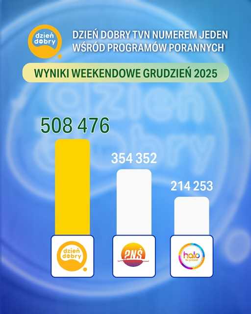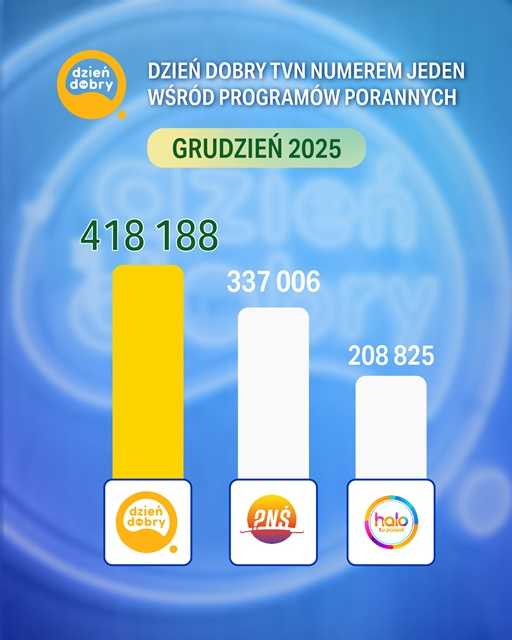 Grudzień należał do “Dzień Dobry TVN”. Wyniki oglądalności nie pozostawiają wątpliwości – to właśnie z “Dzień Dobry TVN” widzowie najchętniej spędzali poranki w ubiegłym miesiącu. Wydania programu oglądało średnio ponad 418 tysięcy widzów. W grupie wiekowej 20-54 format osiągnął udział w rynku na poziomie 11,03%, a w grupie 16-49: 10,18%.