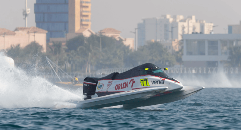 Po niezwykle udanej rundzie w Arabii Saudyjskiej na dziewiąte miejsce w klasyfikacji generalnej awansował Bartek Marszałek. Zawodnik ORLEN Team był trzeci zarówno w sprincie, jak i w wyścigu Grand Prix. Szardża to dla niego szczęśliwe miejsce – w 2019 roku zdobył tam swoje pierwsze podium w F1H2O. Zarówno wtedy, jak i teraz, zawody w Szardży transmitować będzie Motowizja.