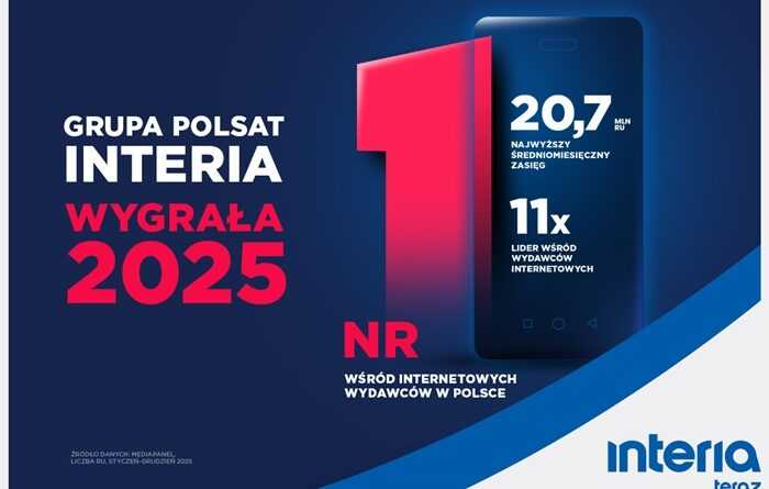 Grupa Polsat-Interia, po mocnym finiszu w grudniu, wygrała rywalizację wśród wydawców internetowych w Polsce w 2025 roku. Według badania Mediapanel wydawca portalu Interia oraz serwisów Polsatnews.pl i Polsatsport.pl nieprzerwanie od jedenastu miesięcy (luty – grudzień) zwyciężał w Internecie, osiągając przy tym najwyższy średniomiesięczny zasięg w 2025 roku – 20,66 mln RU.