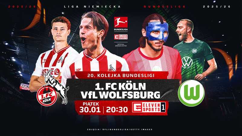 1. FC Köln (Jakub Kamiński) – VfL Wolfsburg (Kamil Grabara), piątek, 30 stycznia, 20:30, Eleven Sports 1