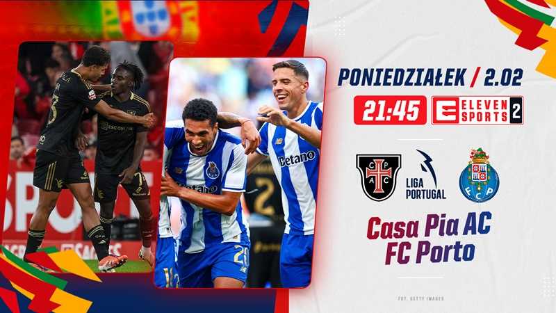Casa Pia AC – FC Porto (Jan Bednarek, Jakub Kiwior, Oskar Pietuszewski), poniedziałek, 2 lutego, 21:45, Eleven Sports 2