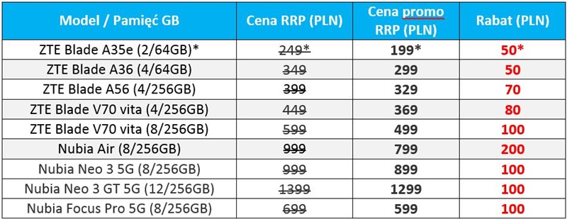 Promocją objęte są następujące modele ZTE Blade oraz nubia: