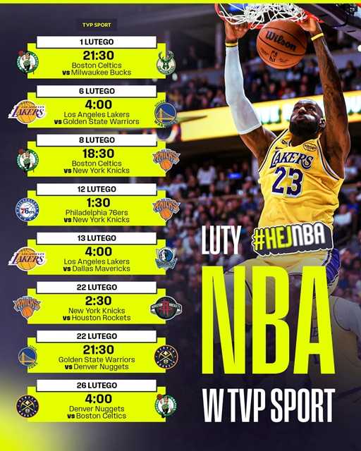 NBA wróciło na antenę Telewizji Polskiej. Począwszy od stycznia 2026 roku będziemy pokazywać dwa mecze fazy zasadniczej tygodniowo, decydujące starcia Pucharu NBA, wybrane mecze fazy play-in i play-off oraz jedną z serii finałów konferencji i wszystkie mecze finałów ligi.