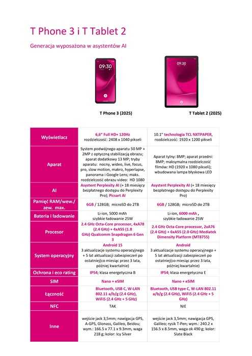 Poza najwyższej klasy asystentem AI, oba urządzenia marki T-Mobile oferują także parametry z najwyższej półki. Zarówno smartfon, jak i tablet otrzymały ulepszony chipset, dzięki czemu imponują płynnym i szybkim działaniem, jak i krótszym czasem ładowania aplikacji. W telefonie T Phone 3 funkcje aparatu także zostały zintegrowane z AI, pozwalając na intuicyjną i błyskawiczną edycję zdjęć, modyfikację ich tła czy tworzenie awatarów dzięki aplikacji Picsart. Obydwa urządzenia działają w technologii 5G, która pozwala na łączność w ramach superszybkiej sieci T-Mobile 5G Bardziej.