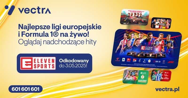 Vectra otwiera dostęp do kanału Eleven Sports 1 dla klientów korzystających z oferty TV, którzy na co dzień nie mają go w swojej ofercie. Dostęp zyskają abonenci telewizji cyfrowej, telewizji internetowej z dekoderem oraz użytkownicy streamingu tvsmart.pl – niezależnie od posiadanego pakietu i bez żadnych dodatkowych opłat. Kanał będzie dostępny w „otwartym oknie” do 3 maja.