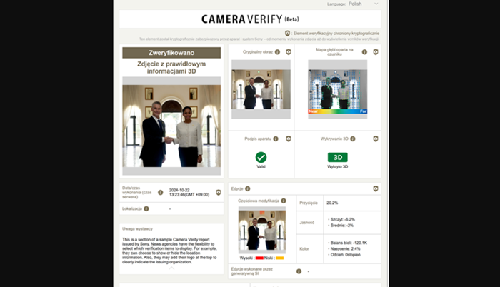 Ponadto platforma współpracy Sony oparta na chmurze, Ci Media Cloud, będzie teraz wyświetlać informacje o podpisach cyfrowych zgodnych z C2PA, zwiększając autentyczność treści wiadomości.