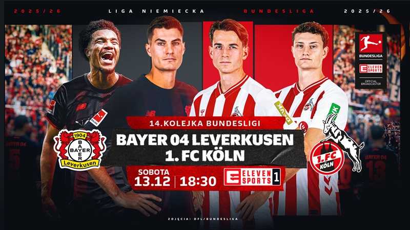 Bayer 04 Leverkusen – 1. FC Köln (Jakub Kamiński), sobota, 13 grudnia, 18:30 (studio od 17:30), Eleven Sports 1