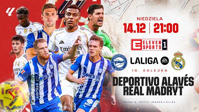 Deportivo Alavés – Real Madryt, niedziela, 14 grudnia, 21:00 (studio od 20:00), Eleven Sports 1