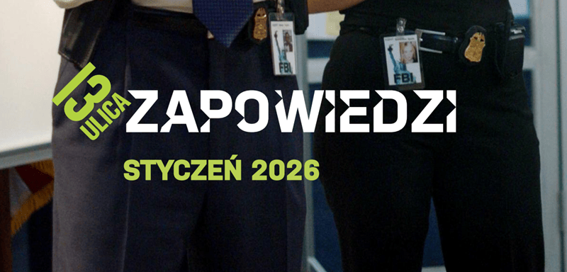 W nadchodzącym miesiącu 13 Ulica poleca: Premierę serialu kryminalnego „Bez śladu” – emisja od 5 stycznia od poniedziałku do piątku o 20:10. 6. sezon francuskiego serialu kryminalnego „Astrid i Raphaëlle” – emisja od 5 stycznia w poniedziałki o 22:00. Nowy sezon serialu „Chicago P.D.” – emisja od 6 stycznia we wtorki o 22:00. Premierę 3. sezonu serialu „Petra” – od 21 stycznia w środy o 22:00, 3. sezon serialu „Motyw” – od 8 stycznia w czwartki o 22:00. „Morderstwo w…”, czyli podróż w głąb francuskiego świata zabójstw w filmach: „Zabójstwo w lesie Broceliande”. „Zabójstwo w Grasse”, „Zabójstwo w Strasburgu” – od 11 stycznia w niedziele o 22:00. Od 1 do 4 stycznia zapraszamy na filmowe Świąteczne Specjały. Codziennie o 22:00 na antenie pojawią się pełne niespodzianek kinowe hity, między innymi: „Pozory prawdy”, „Odzyskać dziecko” czy „Psy mafii.