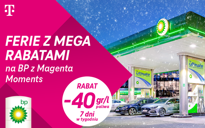 W T-Mobile robimy wszystko, by każdy wyjazd – zarówno ten w góry, jak i do pracy – był dla naszych klientów jak najlepszym doświadczeniem. Podczas gdy nasza najszybsza sieć 5G Bardziej zapewnia płynną nawigację i niezakłóconą rozrywkę podczas podróży, program Magenta Moments dba o całą resztę dzięki wyjątkowym zniżkom i rabatom. Teraz – jak zawsze przed feriami – do programu Magenta Moments wracają wyjątkowe oferty, w tym promocje na stacjach paliw bp!