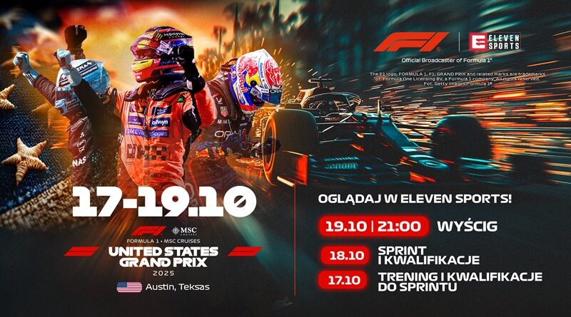 19:00, Eleven Sports 2, FORMULA 1 MSC CRUISES UNITED STATES GRAND PRIX 2025: sprint (studio od 18:15) komentarz: Michał Gąsiorowski, Mikołaj Sokół, studio: Aldona Marciniak, Robert Smoczyński, Kacper Sztuka, w Austin: Bartosz Budnik, Filip Kapica