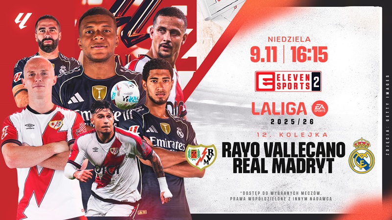 16:15, Eleven Sports 2, LALIGA EA SPORTS: Rayo Vallecano – Real Madryt komentarz: Eryk Szpuch, Mateusz Majak