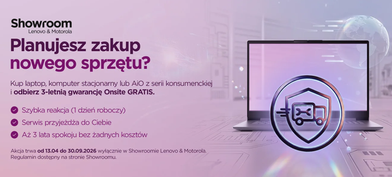 Aby wziąć udział w promocji, wystarczy kupić notebook, komputer stacjonarny lub AiO z serii konsumenckiej marki Lenovo w Showroomie Lenovo & Motorola w Warszawie i poinformować sprzedawcę o chęci skorzystania z oferty przy dokonywaniu płatności. Promocja obowiązuje do 30 września 2026 r. Więcej informacji oraz regulamin promocji znajduje się na tej stronie.