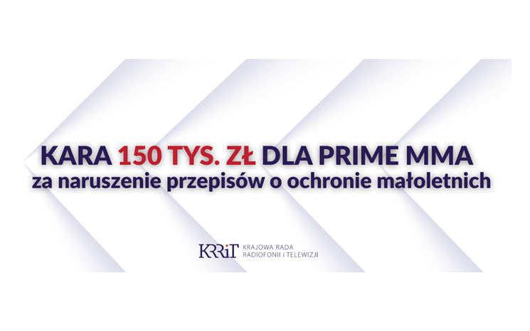 Przewodnicząca Krajowej Rady Radiofonii i Telewizji dr Agnieszka Glapiak nałożyła karę pieniężną w wysokości 150 tys. zł na spółkę PRIME MMA Sp. z o.o. Sprawa dotyczy treści udostępnianych w ramach usługi „PRIMESHOWMMA” w serwisie YouTube, które nie zostały właściwie zabezpieczone przed dostępem osób niepełnoletnich.