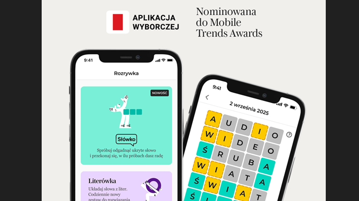 Aplikacja Wyborczej została nominowana do Mobile Trends Awards 2025, najważniejszych nagród w polskiej branży mobile. Wyróżnienie przyznano za rozwój sekcji Rozrywka – inteligentnych gier i interaktywnych formatów, które budują lojalność użytkowników i przyciągają nowe grupy odbiorców.