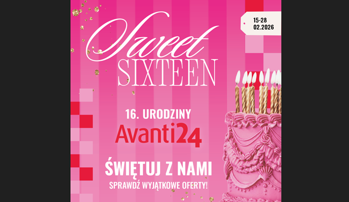 Serwis Avanti24.pl przygotował specjalną akcję promocyjną z okazji 16. urodzin. Projekt pod hasłem „My Sweet Sixteen” jest realizowany w dniach 15–28 lutego 2026 roku i obejmuje strefę tematyczną poświęconą modzie, urodzie i zakupowym rekomendacjom.