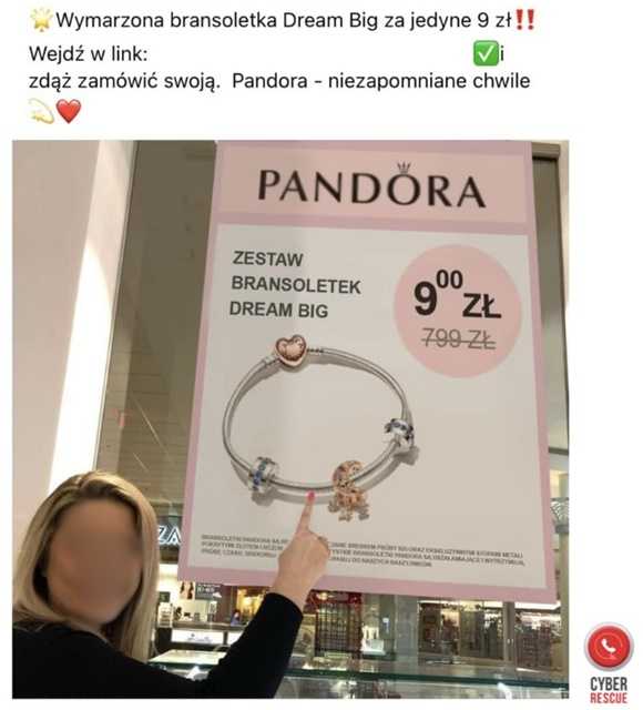 Oszuści publikują na Facebooku sponsorowane posty, w których informują o „specjalnych rabatach” na biżuterię Pandora. Kuszą też fałszywymi kuponami podarunkowymi, wysyłanymi jako wiadomości mailowe.