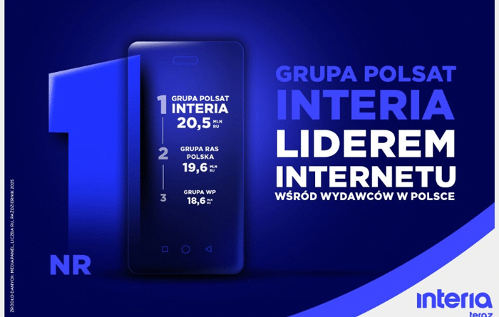 Grupa Polsat – Interia nr 1 wśród wydawców internetowych w Polsce. Według badania Mediapanel wydawca portalu Interia oraz serwisów Grupy Polsat Plus dzięki zaufaniu 20,5 mln użytkowników osiągnął największą w swojej historii przewagę – 891 tys. RU nad drugim wydawcą w zestawieniu (Grupa RAS Polska, 19,6 mln RU). Grupa Polsat – Interia od dziewięciu miesięcy jest niekwestionowanym liderem Internetu wśród grup medialnych Polsce.