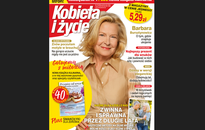 Wydanie 10/2025 z Barbarą Bursztynowicz na okładce na rynku od 3 września w odmienionej szacie graficznej i nowej strukturze, z przepisami w formie książki kulinarnej do zbierania, zintegrowanej z miesięcznikiem. Sekcja kuchenna pełna jest sezonowych dań i ulubionych, sprawdzonych przepisów czytelniczek.