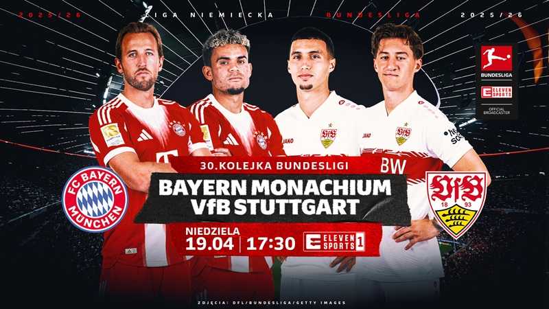 17:30, Eleven Sports 1, Bundesliga: Bayern Monachium – VfB Stuttgart (studio od 17:10)