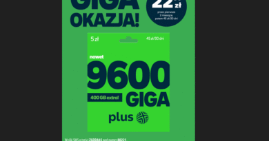 Warunkiem skorzystania z promocji jest oczywiście zakup startera. I to nie byle jakiego, a tego od Plusa na Kartę ze specjalnym oznaczeniem Eleven Sports. Dostępny jest w sieci sklepów Żabka oraz w sklepach sieci Lagardere (Inmedio, Relay, SoCoffee, 1Minute, Aelia Duty free na lotniskach, dworcach i stacjach metra). Następnie należy założyć konto w Polsat Box Go, aktywować starter oraz utrzymywać ciągłość pakietu za 45 zł/30 dni i… cieszyć się płynącymi z tego zakupu korzyściami. Zaliczają się do nich 6 miesięcy darmowego dostępu m.in. do kanałów Eleven Sports oraz 9000GB internetu (750GB co 30 dni) do wykorzystania przez rok, a rozmowy, SMS-y i MMS-y są nielimitowane.