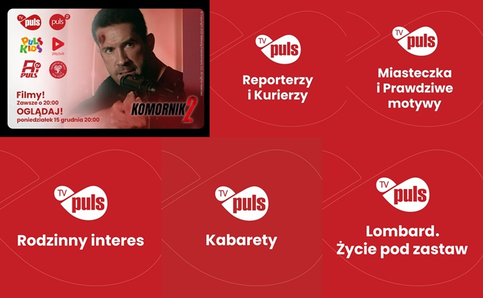 Telewizja Puls, realizując strategię szerokiego dostępu do swoich produkcji telewizyjnych, uruchamia w serwisie streamingowym Sweet.TV pięć nowych kanałów FAST, zawierających część bogatej biblioteki programowej nadawcy. Kanały zostały nazwane tak, aby widz łatwo zidentyfikował swoje ulubione seriale i programy.