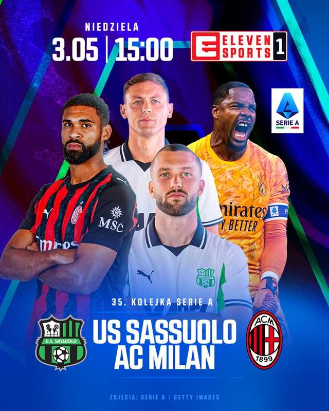 15:00, Eleven Sports 1, Serie A: US Sassuolo Calcio – AC Milan komentarz: Piotr Dumanowski, Dominik Guziak